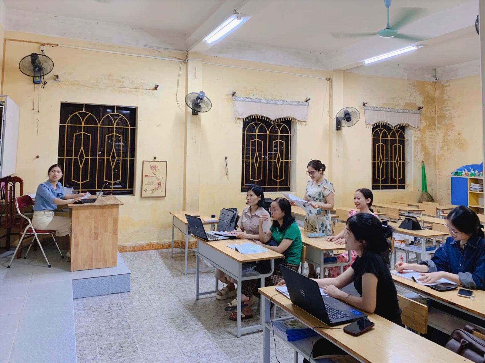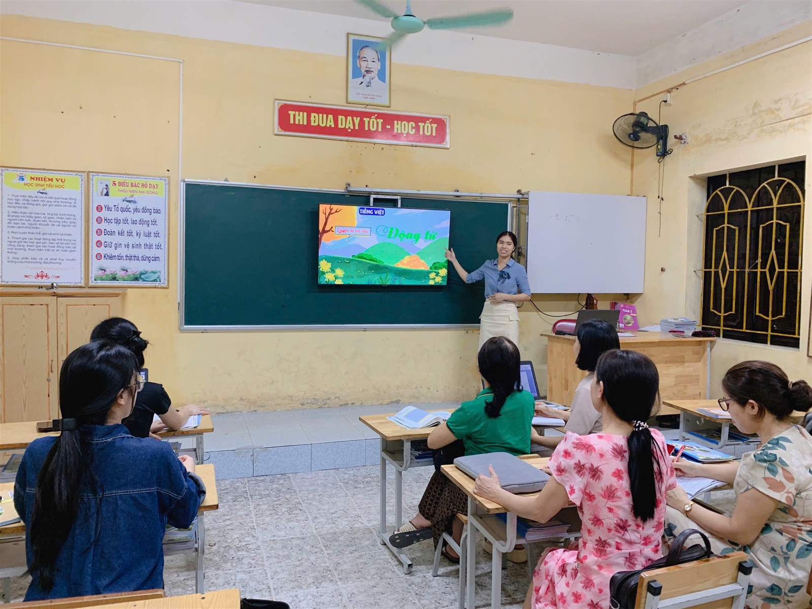 Bên cạnh đó, các thầy cô cũng cùng nhau phân tích điểm mạnh, hạn chế, từ đó đề xuất giải pháp cụ thể để áp dụng hiệu quả hơn vào thực tế giảng dạy môn Tiếng Việt nói riêng và các môn học khác nói chung.