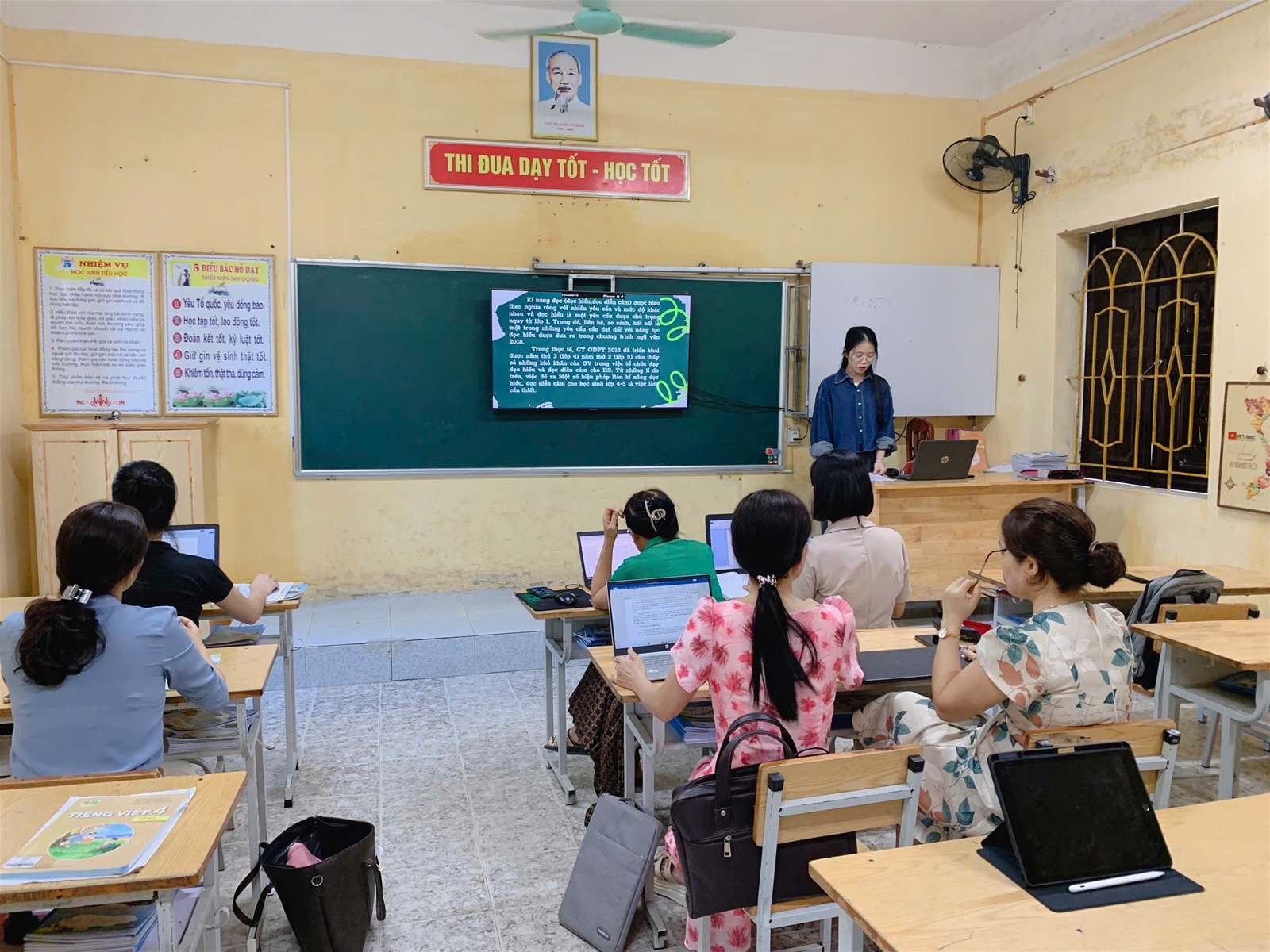 Thực hiện Kế hoạch tổ chuyên môn năm học 2025-2026, được sự quan tâm, chỉ đạo của Ban giám hiệu nhà trường, ngay từ đầu năm học, tổ chuyên môn 4-5 đã cùng nhau trao đổi, xây dựng chuyên đề "Một số biện pháp nâng cao chất lượng đọc hiểu, đọc diễn cảm cho học sinh lớp 4-5". Trong buổi sinh hoạt chuyên môn ngày 01/10/2025, cô Nguyễn Minh Hằng - giáo viên Tổ 4-5 đã báo cáo nội dung chuyên đề. Chuyên đề hướng đến mục tiêu giúp học sinh không chỉ đọc đúng, đọc hay mà còn hiểu sâu ý nghĩa từng bài học, biết bày tỏ cảm xúc và nuôi dưỡng tình yêu Tiếng Việt.