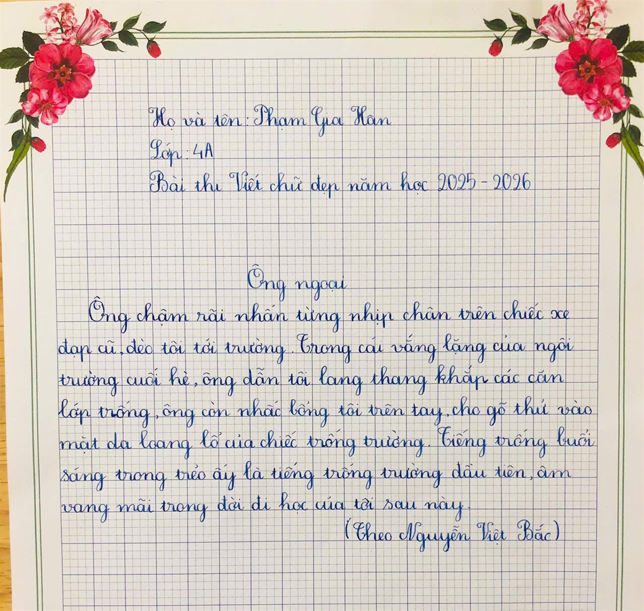Yêu cầu mỗi giáo viên chú ý hướng dẫn cho học sinh cách viết đúng, đẹp và ý thức giữ vở sạch. Đặc biệt với lớp Một, giáo viên chú trọng dạy cho trẻ từ cách cầm bút đến tư thế ngồi đúng ngay từ những buổi học đầu tiên. Đây là nền tảng ban đầu giúp học sinh rèn luyện chữ viết.