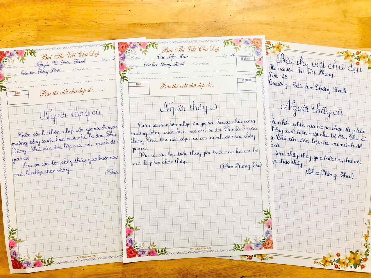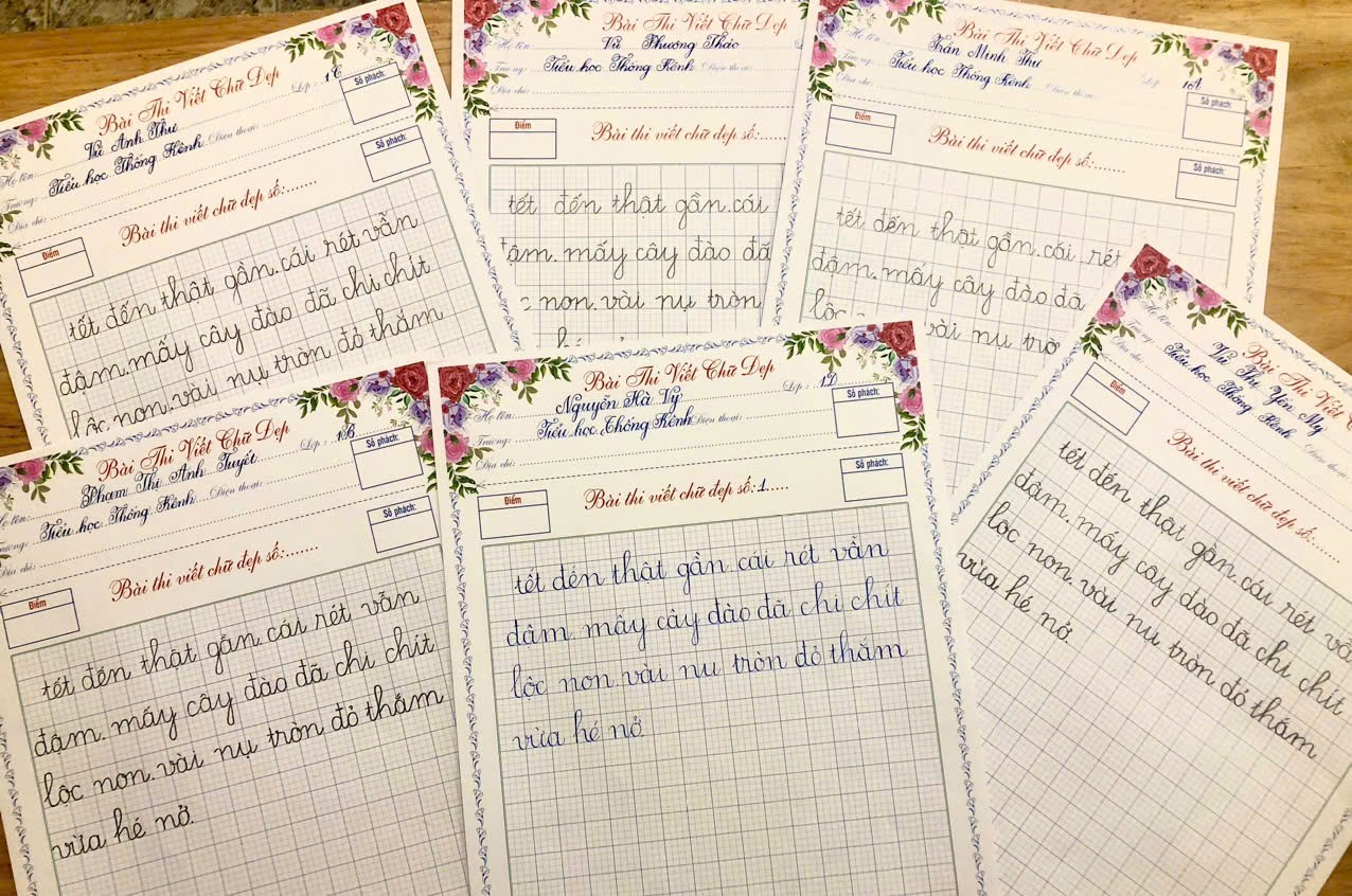 Ngay từ đầu năm học, nhà trường đã lên kế hoạch tổ chức Hội thi và phát động phong trào thi đua: “Giữ vở sạch, viết chữ đẹp” cho học sinh các khối lớp với mong muốn mỗi giáo viên luôn chú ý hướng dẫn cho học sinh cách viết đúng, đẹp và ý thức giữ vở sạch. Mỗi học sinh tham gia Hội thi “Giữ vở sạch, viết chữ đẹp” sẽ thể hiện ở hai nội dung gồm: chấm 1 quyển vở viết trên lớp (Khối 1: vở Tập viết; Khối 2,3,4,5 : vở Tiếng Việt) và bài Viết chữ đẹp theo đề của nhà trường. Sau khi chấm và thống nhất kết quả, toàn trường có 11/19 lớp đạt Lớp Vở sạch, chữ đẹp. Mỗi khối lớp cũng đã chọn ra được những bài viết xuất sắc, mỗi khối lớp có 1 giải Nhất, 2 giải Nhì và 2 giải Ba.