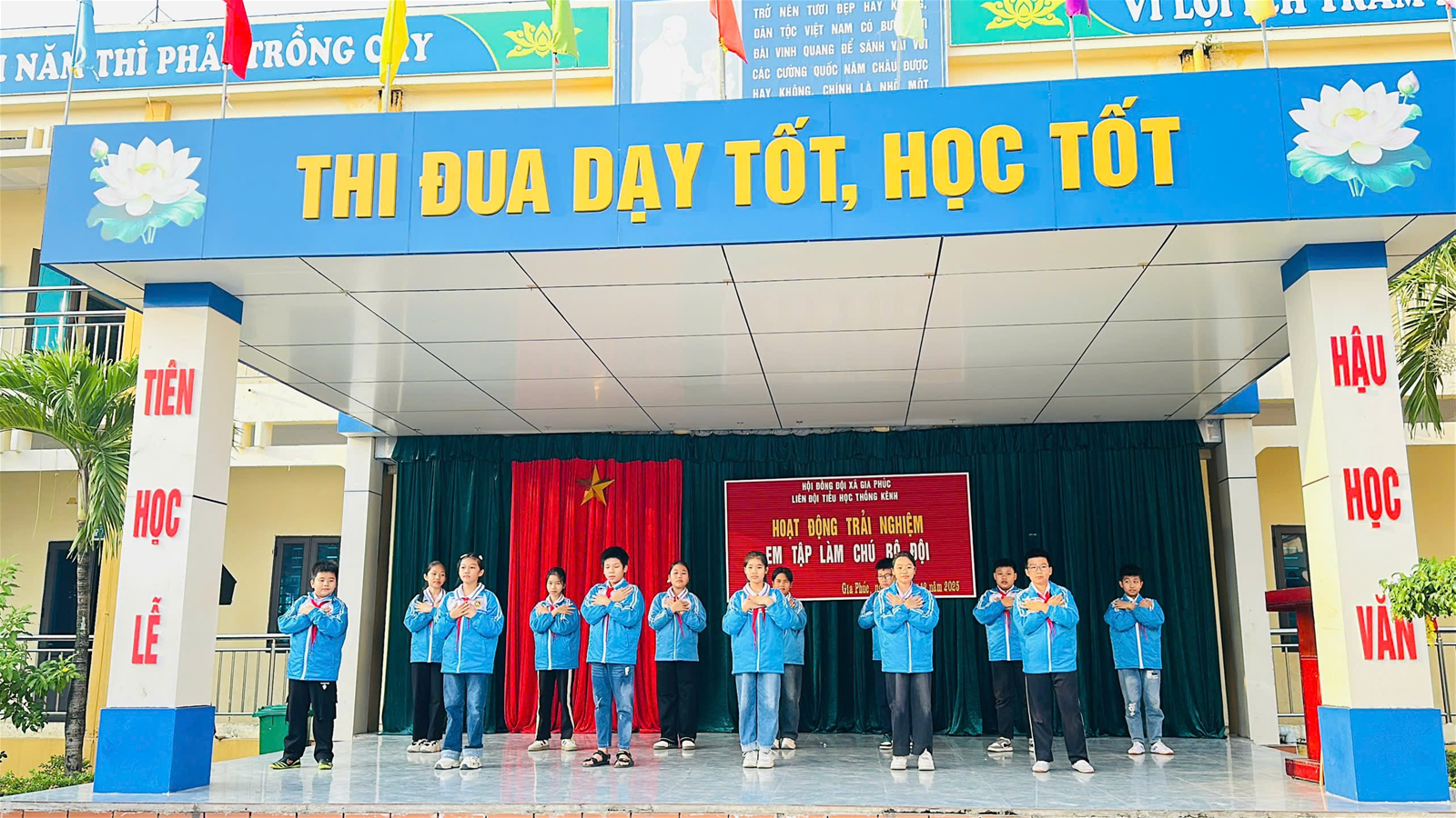 Hòa trong không khí thi đua sôi nổi chào mừng ngày Thành lập Quân đội Nhân dân Việt Nam và ngày Hội Quốc phòng toàn dân (22/12), sáng ngày 7/12/2025, trường Tiểu học Thống Kênh đã tổ chức tiết Sinh hoạt dưới cờ với chủ đề đầy ý nghĩa “Tập làm chú bộ đội”. Buổi sinh hoạt không chỉ là dịp để các em học sinh tìm hiểu về hình ảnh anh bộ đội Cụ Hồ mà còn góp phần giáo dục truyền thống “Uống nước nhớ nguồn”, bồi đắp lòng yêu nước và ý thức rèn luyện bản thân cho các em.