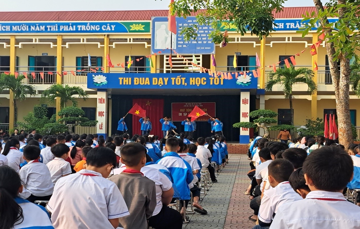 Mở đầu buổi sinh hoạt, thầy cô và học sinh toàn trường cùng lắng nghe lời dẫn trang trọng, ấm áp, nhắc nhở về những hy sinh thầm lặng của các thế hệ chiến sĩ đã gìn giữ hòa bình cho Tổ quốc. Qua đó, các em học sinh thêm hiểu rằng cuộc sống yên bình hôm nay là thành quả của bao mồ hôi, xương máu của những người lính anh hùng.