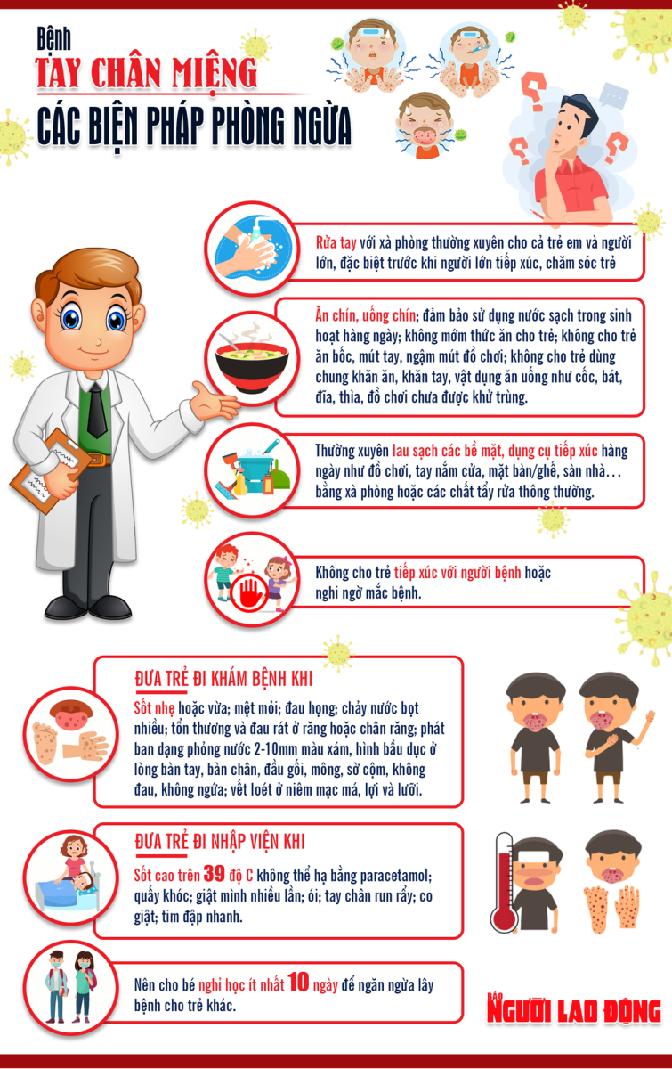 - Phát hiện sớm các dấu hiệu của bệnh khi thấy học sinh có biểu hiện sốt và có bọng nước ở bàn tay, bàn chân hoặc bên trong miệng, cần cho học sinh nghỉ học và đưa đến ngay cơ sở y tế gần nhất để được khám và điều trị kịp thời. Không để học sinh bị bệnh tiếp xúc với các học sinh khác.