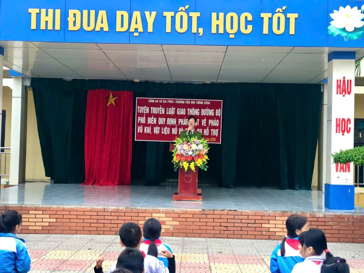 Thực hiện Công văn số 277/SGDĐT-VP ngày 14/01/2026 của Sở Giáo dục và Đào tạo về việc phối hợp tuyên truyền , phòng ngừa vi phạm về vũ khí, vật liệu nổ, công cụ hỗ trợ và pháo trong học đường, Kế hoạch giáo dục của nhà trường, sáng ngày 21 tháng 1 năm 2026, trường Tiểu học Thống Kênh đã phối hợp với Công an xã Gia Phúc tổ chức buổi tuyên truyền An toàn giao thông và phòng, chống pháo nổ trong dịp Tết Nguyên đán cho cán bộ, giáo viên và toàn thể học sinh nhà trường trong dịp trước, trong và sau Tết Nguyên đán 2026.