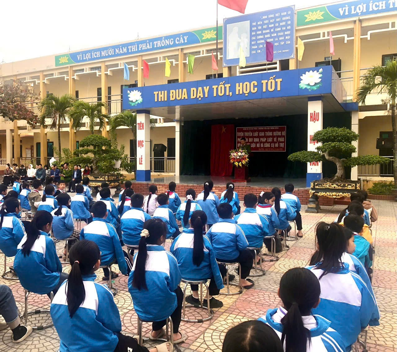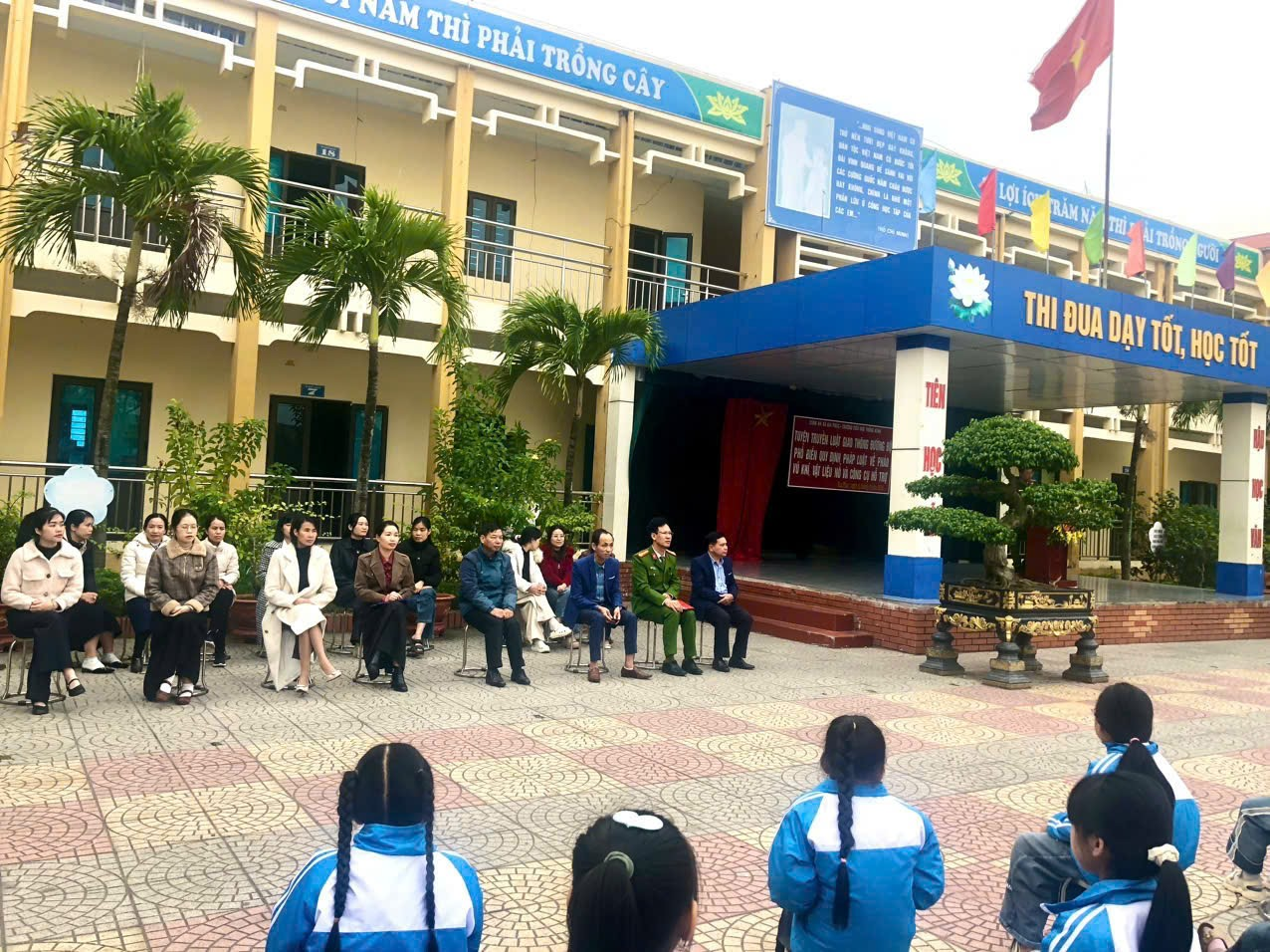 Về dự buổi tuyên truyền có đồng chí Trung tá Tăng Xuân Nghĩa - Phó trưởng công an xã, đồng chí Trung tá Nguyễn Trọng Trà - cán bộ phụ trách địa bàn, đồng chí Thiếu tá Nguyễn Thanh Bình - Tổ trưởng tổ tuyên truyền công an xã Gia Phúc, thầy Hoàng Sách Khôi - Bí thư chi bộ, hiệu trưởng nhà trường cùng các thầy cô giáo và các em học sinh trong toàn trường.