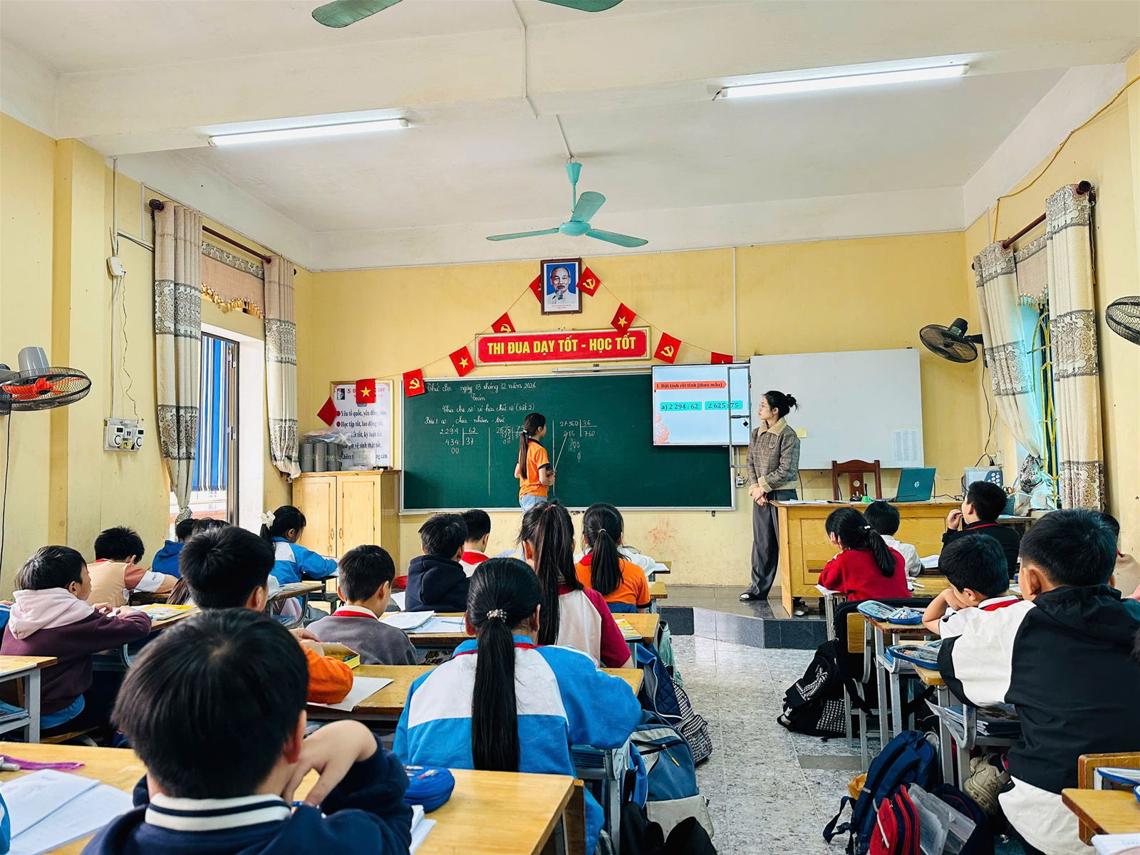 Trước đó, ngày 30/1/ 2026 tổ đã sinh hoạt nghiên cứu và xây dựng kế hoạch bài dạy “Chia cho số có hai chữ số (tiết 2)” môn Toán lớp 4. Ngày 02/02/2026, tổ 4 - 5 đã tổ chức thành công tiết dạy “Chia cho số có hai chữ số (tiết 2)” môn Toán lớp 4, do cô giáo Nguyễn Minh Hằng thực hiện. Tiết học được xây dựng bám sát yêu cầu cần đạt của chương trình, chú trọng phát triển năng lực toán học và phẩm chất cho học sinh. Thông qua các hình thức tổ chức dạy học đa dạng như trò chơi khởi động, hoạt động nhóm đôi, thảo luận – nhận xét bài làm của bạn, học sinh được học tập tích cực, chủ động, mạnh dạn trình bày cách làm và hỗ trợ lẫn nhau trong học tập. Sau tiết dạy, giáo viên trong tổ đã cùng nhau trao đổi, phân tích hoạt động học của học sinh, từ đó rút ra những kinh nghiệm quý báu nhằm điều chỉnh phương pháp dạy học, nâng cao chất lượng giảng dạy môn Toán trong nhà trường.